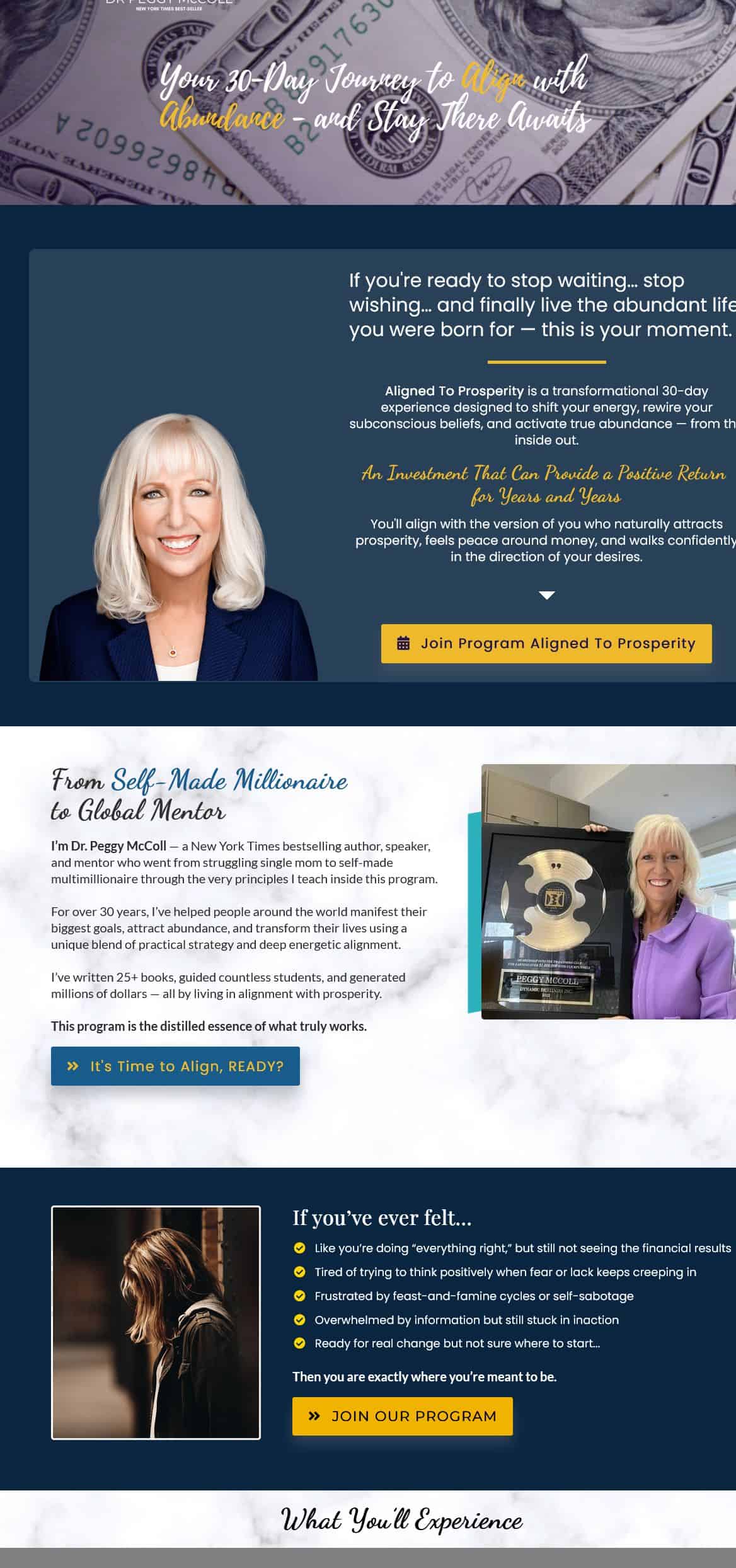 • Welcome to Aligned to Prosperity with Dr. Peggy McColl (18m 26s) — Program overview, expectations, and how to navigate the 30-day experience