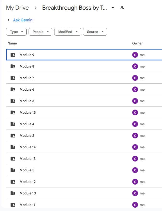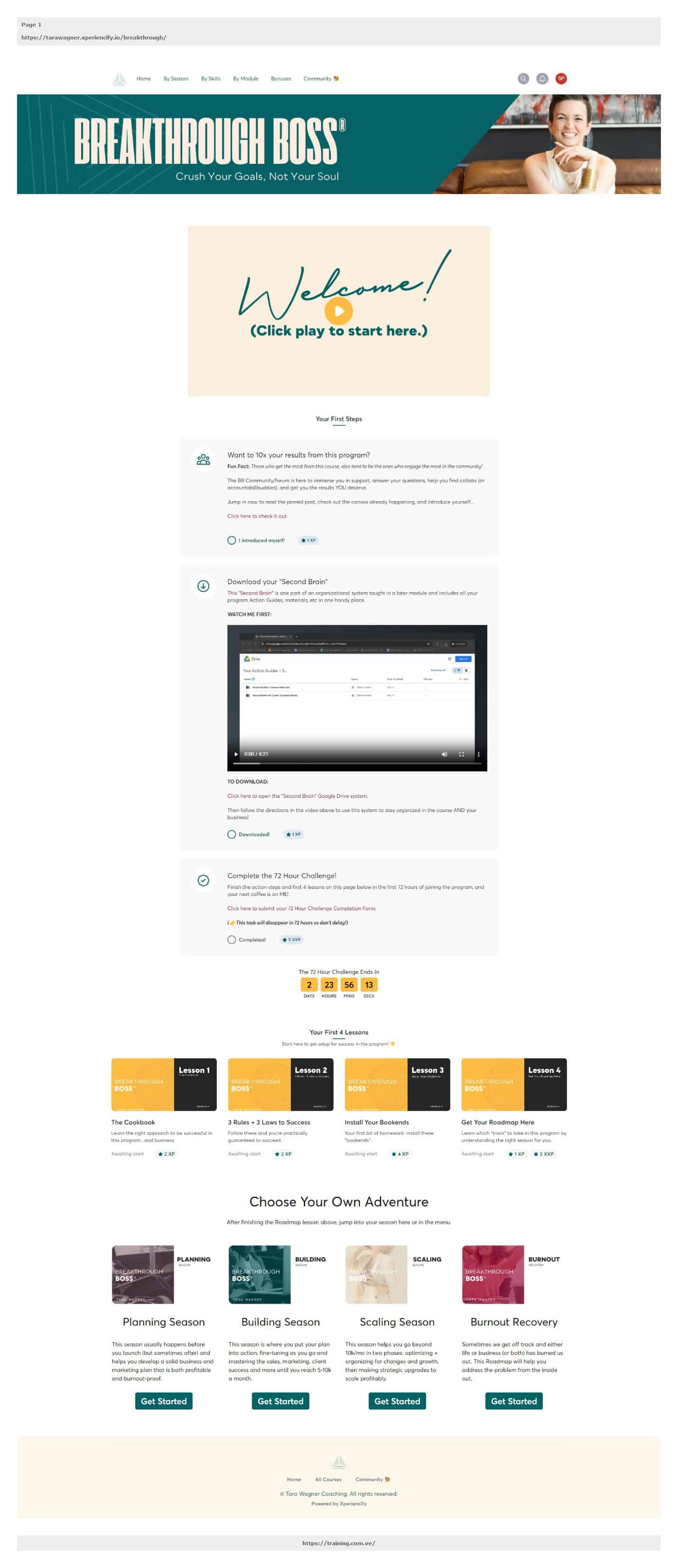 The Three-Season Framework — Rather than dumping all content at once or following a rigid sequence, Breakthrough Boss organizes the entrepreneurial journey into three distinct seasons: Planning (Modules 1-3), Building (Modules 4-8), and Scaling (Module 9). This structure lets business owners enter at the season that matches their current stage instead of wading through content that does not apply yet.