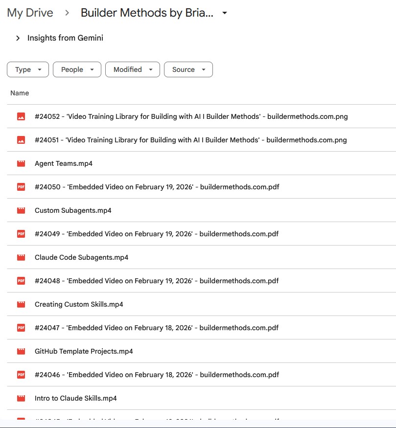 Builder Methods Pro does not divide content into numbered modules — it is structured as a continuous, growing library of video lessons organized by topic. Below is the complete lesson list extracted from the course file tree.