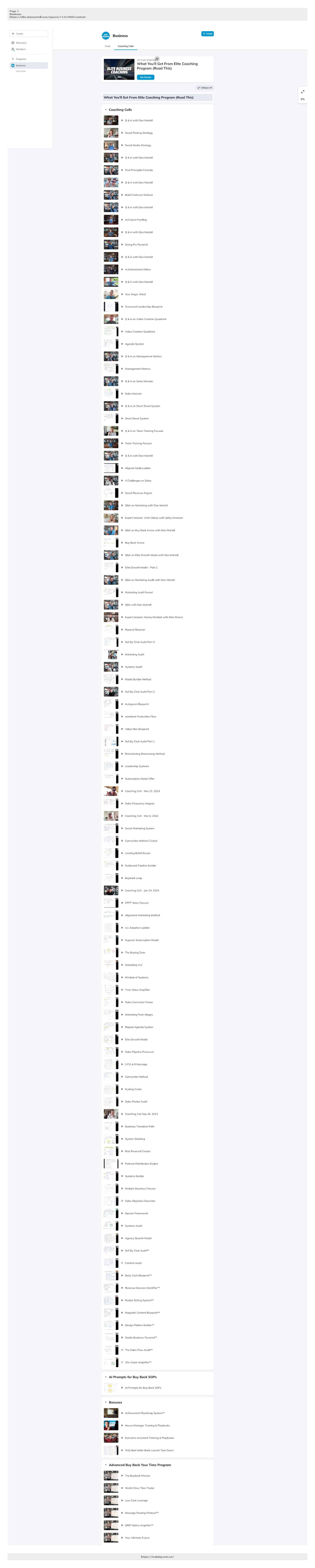 Elite Business Coaching Program applies Dan's signature “Buy Back Your Time” methodology, which provides a quantifiable framework for calculating hourly time value and systematically delegating low-value tasks, rather than generic productivity advice. The program includes 19 live Q&A sessions spanning 13 months for real-time implementation support, not just one-time content delivery. Dan's frameworks are extracted from actually building and exiting three companies rather than consultant theory. The AI Prompts for Buy Back SOPs represents a modern approach using AI to accelerate operational documentation, removing the traditional barrier that keeps businesses from creating systems.