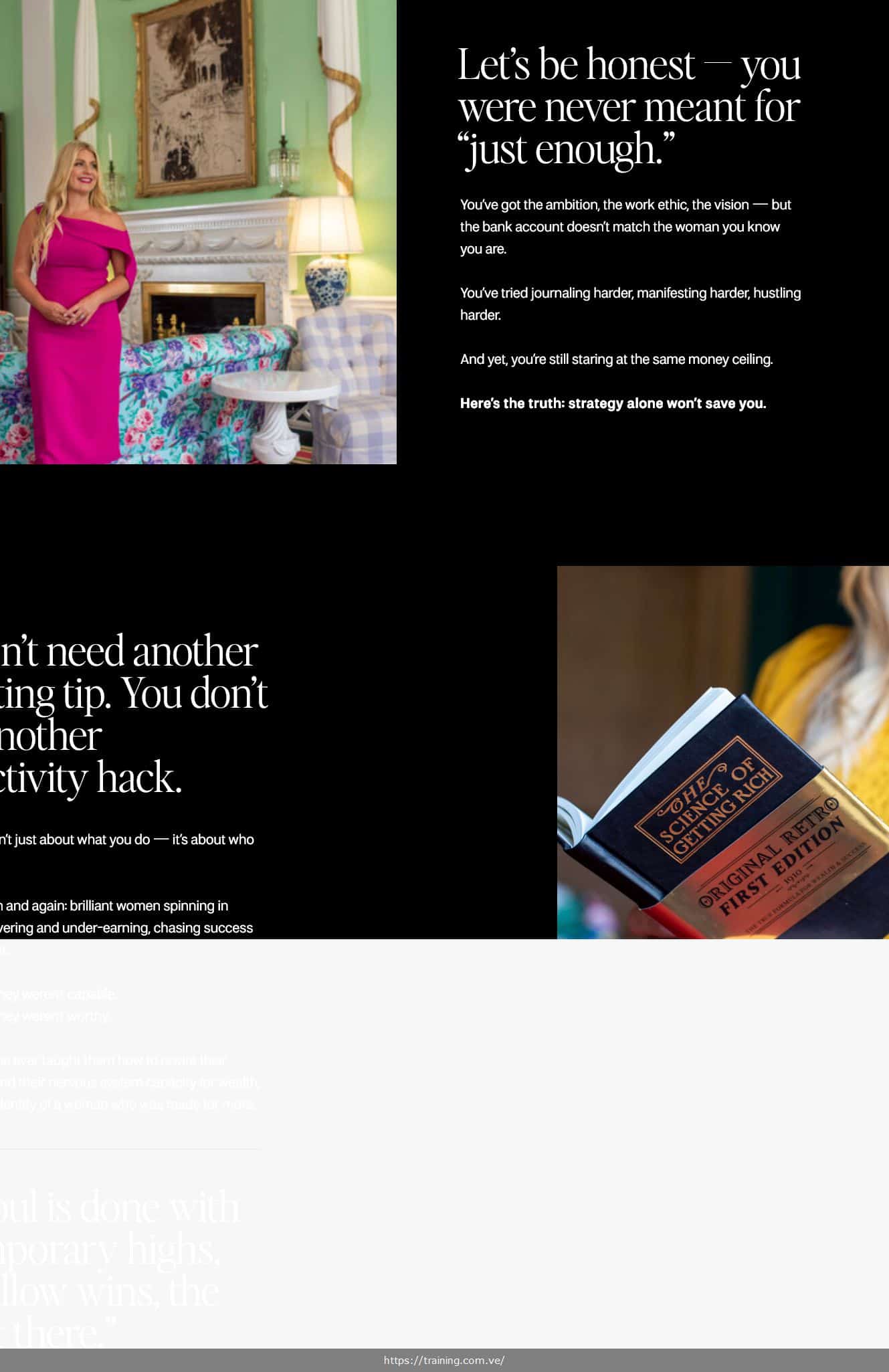 The program is designed for women — entrepreneurs, career professionals, and creatives — who experience persistent income ceilings, difficulty raising prices, money anxiety despite earning, or patterns of over-delivering and under-charging. It is equally applicable to those without a business, as the framework addresses wealth identity rather than business tactics. According to the sales page, prior experience with money mindset programs is not required.