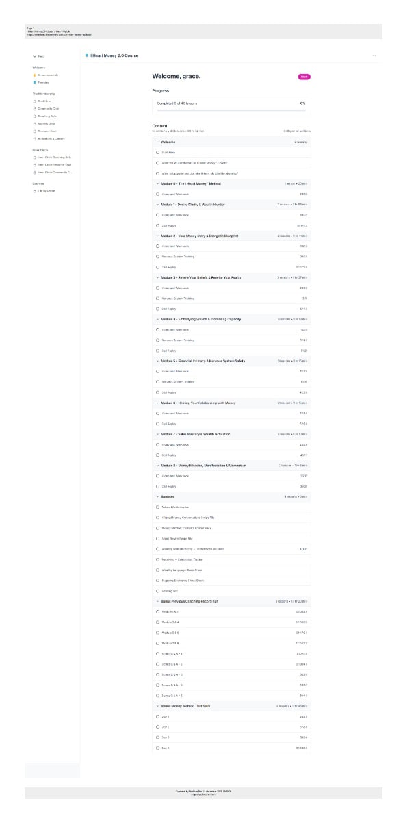 Money Method That Sells (4-Video Series) — A complete bonus training covering how to build and market income-generating offers using the Abundant Self identity framework. Delivered as four video lessons totaling approximately 3.5 hours. Addresses the offer creation and sales communication side of wealth building as a companion to the core mindset modules.