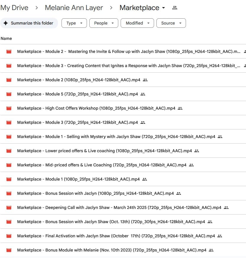 Marketplace is a sales training program by Melanie Ann Layer, founder of the $100 million Alpha Femme brand and pioneer in feminine energetics and business coaching. The program teaches coaches and service providers how to sell with integrity and confidence using feminine magnetism rather than traditional push-based sales tactics. Includes 24 video lessons, 8 PDFs, and 23h 55m 28s of content totaling 13.41 GB.